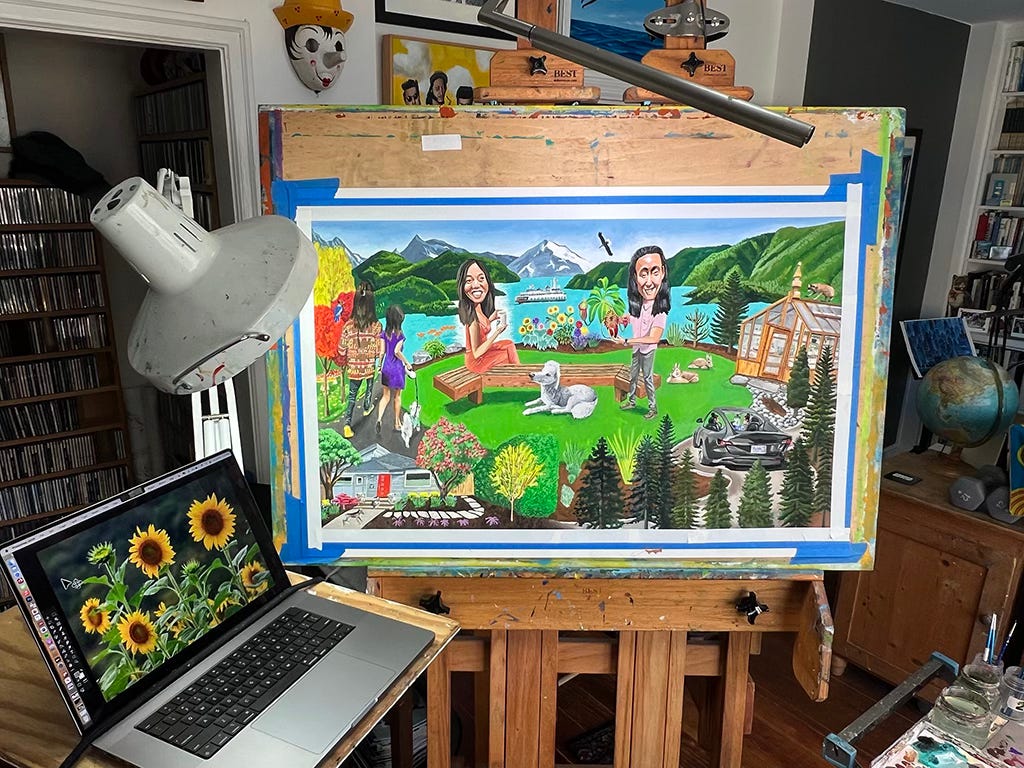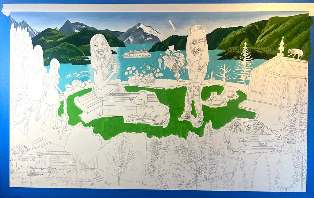 When they later moved to Seattle they requested another family portrait with a longer list of items to incorporate.